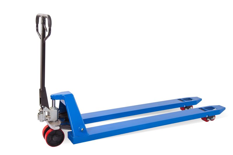 Данная модификация тележки RHP выполняется с удлиненными вилами. Длина вил составляет 1800 мм для работы с нестандартными по длине паллетами или обрабатывать легкий, но объемный груз перевозя сразу 2 паллеты. Грузоподъемностью 2,5 тонны – для обработки грузов на стандартных евро паллетах. Износостойкие полиуретановые колеса увеличивают срок эксплуатации тележки до замены колес.