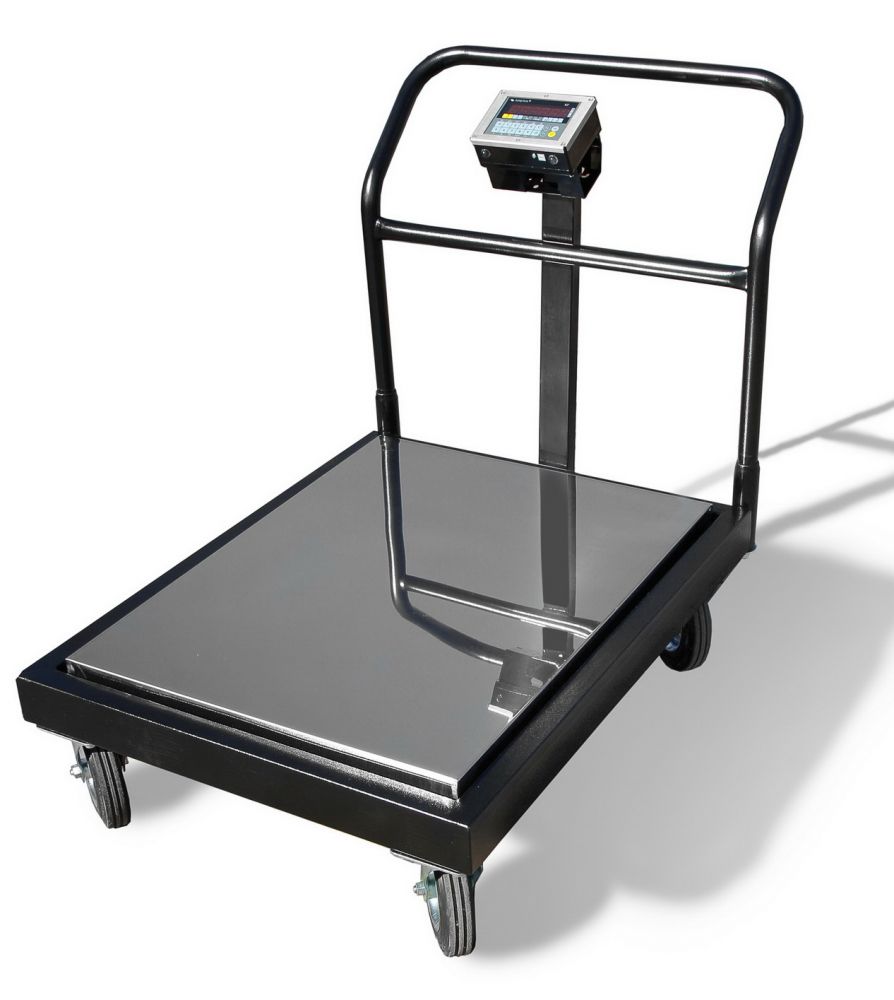 Тележка с весами, позволяет легко организовать мобильные точки учета на складах. Весы встроены в тележку, поэтому трудностей в эксплуатации не возникает. Специальная конструкция и усиленная платформа позволяет не только взвешивать, но и перемещать грузы массой от 400 г до 600 кг в зависимости от модели. Трехдиапазонный режим взвешивания и кварцевый датчик обеспечивают повышенную точность взвешивания для грузов различной массы. По умолчанию тележка с весами оснащена интерфейсом для связи с компьютером RS-232, по заказу возможно оснащение интерфейсами USB, Ethenet или Wi-Fi.