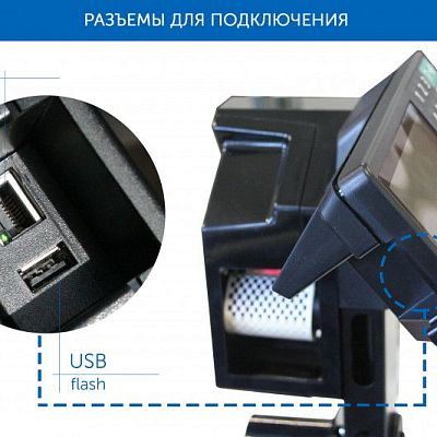 | Разъёмы для подключения периферийных устройств: USB-flash накопителя, сканера штрихкодов, ККМ, дозатора и др. | USB тип А, DB9-MА/вилка (интерфейс RS-232), TJ1A-4P4C |