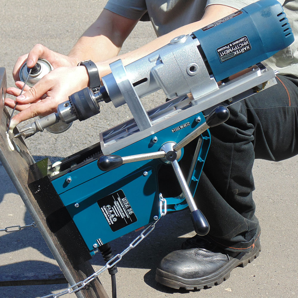 Магнитные сверлильные станки используются при изготовлении и монтаже металлоконструкций, при ремонте судов и крупных транспортных средств, при ремонте других станков.