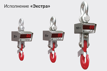 - «Экстра» – крановые весы предназначены для интенсивной эксплуатации в самых тяжёлых промышленных и климатических условиях, в том числе в районах Крайнего Севера. Комплектуются корпусом и датчиком из нержавеющей стали с расширенным температурным диапазоном и наивысшей степенью пылевлагозащиты.