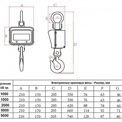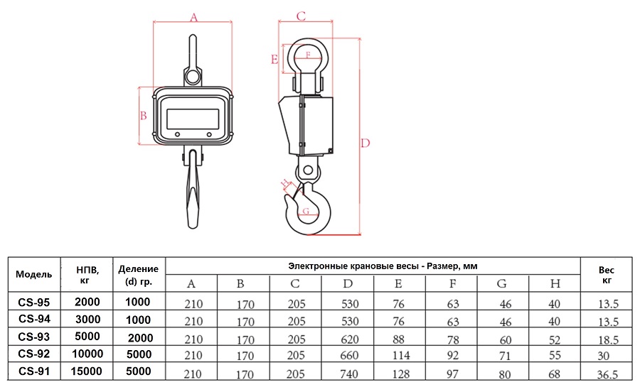 Технические характеристики крановых весов CS: