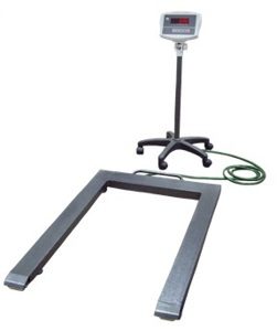Паллетные весы представляют из себя две отдельные грузоприёмные платформы, соединённые между собой жёсткой перемычкой. Применяются для взвешивания поддонов с грузом, перемещаемых гидравлическими роклами или погрузчиками. Расстояние между платформами рассчитано таким образом, чтобы внутрь весов могла заехать рокла и опустить поддон с грузом для взвешивания.