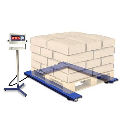 Весы паллетные простого взвешивания, MAX=2000кг. MIN=10кг. e=d=500/ 1000г. П-образная рама размером 1200х800мм изготовлена из конструкционной стали. Светодиодный весовой индикатор МИ ВДА/12ЯС в нержавеющем корпусе. Функции: обнуление, режим суммирования (ручной-автоматический), счетный режим, взвешивание нестабильной нагрузки (взвешивание животных), процентный режим, режим дозирования (со звуковым сигналом), установка значения массы предустановленной тары. Интерфейс RS-232. Питание: от сети 220В/ 50Гц, аккумулятор 6В/ 4,5Ач. Диапазон рабочих температур: -10...+40 ºС. Вес нетто/ брутто: 45/ 46 кг.
