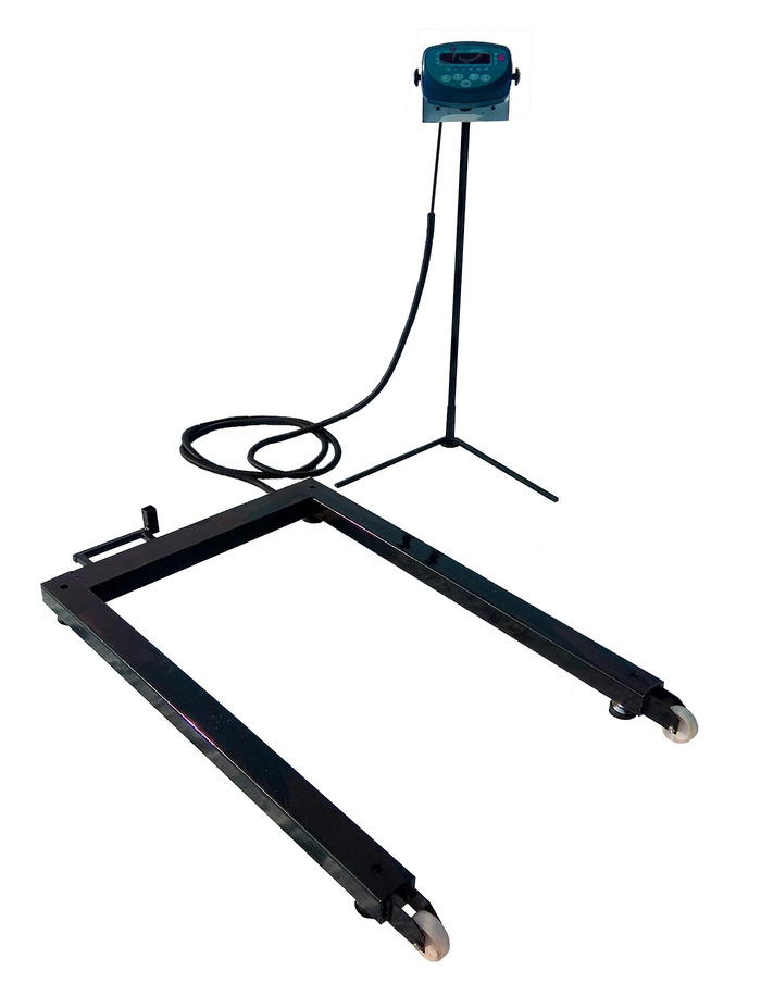 В паллетных весах предусмотрена ручка и два колеса для удобства перемещения весов в ручную.