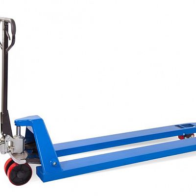 Данная модификация тележки RHP выполняется с удлиненными вилами. Длина вил составляет 1800 мм для работы с нестандартными по длине паллетами или обрабатывать легкий, но объемный груз перевозя сразу 2 паллеты. Грузоподъемностью 2,5 тонны – для обработки грузов на стандартных евро паллетах. Износостойкие полиуретановые колеса увеличивают срок эксплуатации тележки до замены колес.