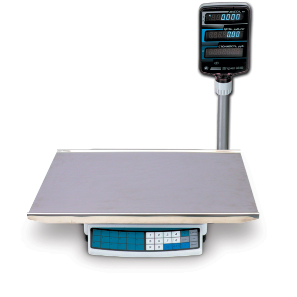 Весы ШТРИХ МIII - торговые весы. Клавиатура увеличена за счет наличия 18 клавиш ПЛУ. Могут поставляться с аккумулятором.